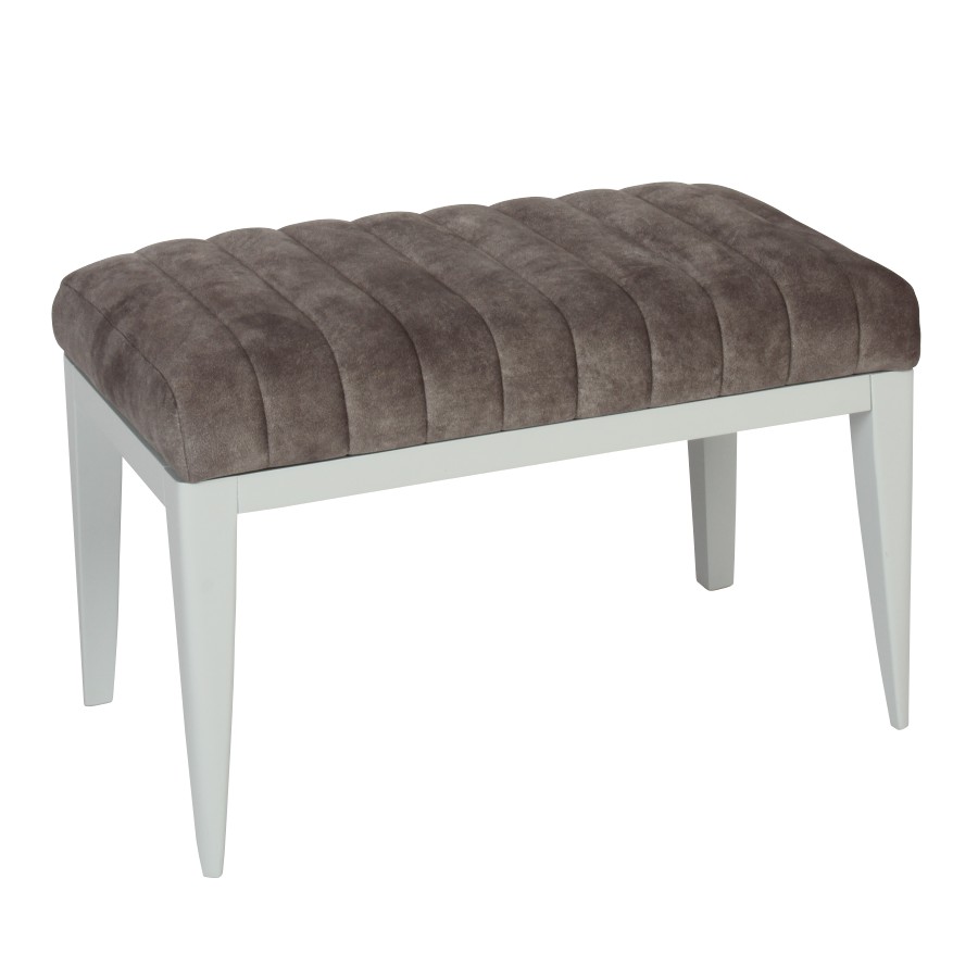 Banco em faia, com acabamento lacado a cinza claro e estofo em tecido.